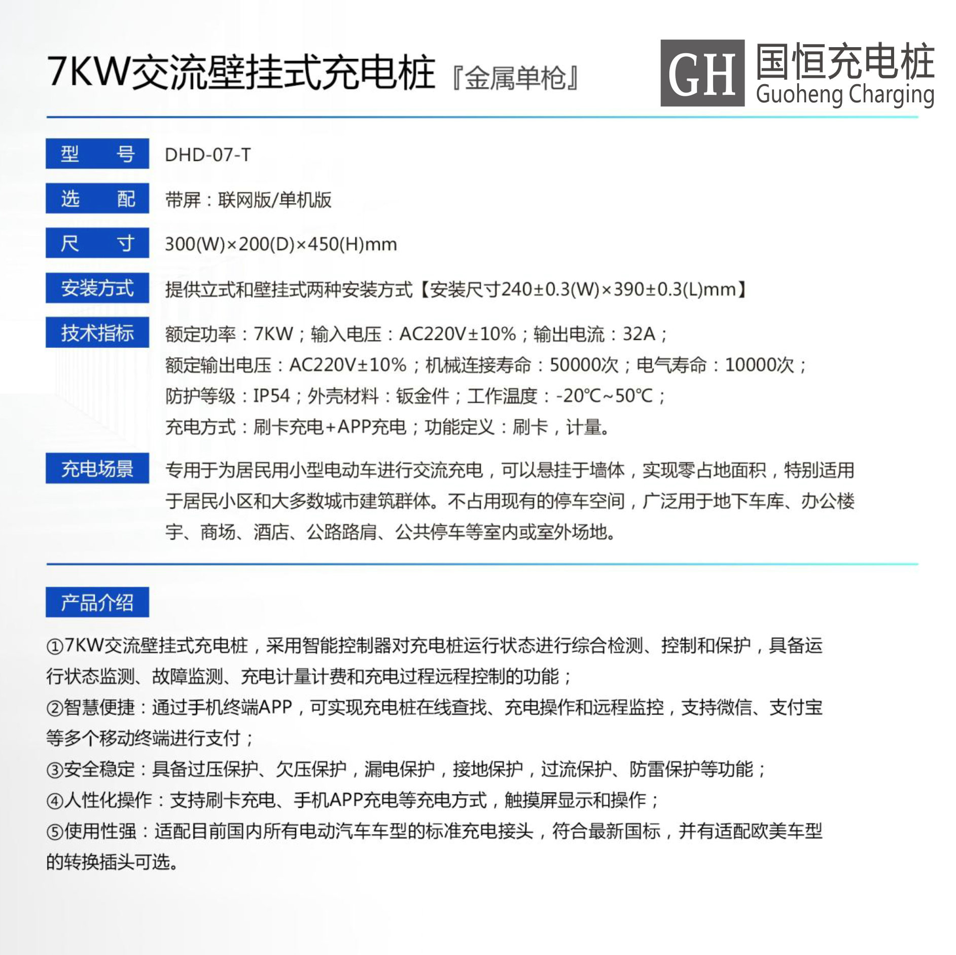 GHA701国标7kw壁挂/立柱式交流充电桩