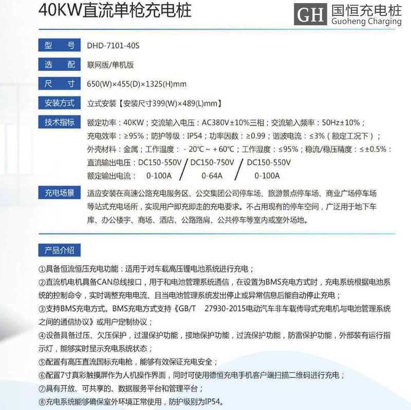 GHD40国标40kw直流单枪充电桩 新能源充电桩家用电动汽车通用直流40kw直流单枪快充充电器适用比亚迪北汽特斯拉蔚来威马理想哪吒荣威广汽通用