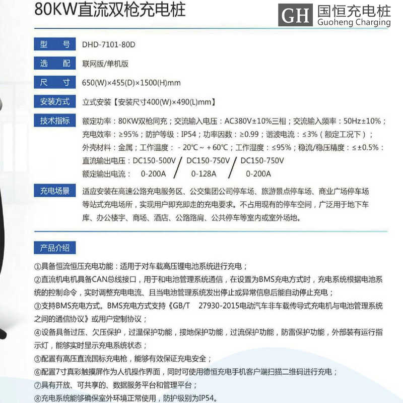 GHD80国标80kw直流双枪充电桩 新能源充电桩家用电动汽车通用直流80kw直流双枪快充充电器适用比亚迪北汽特斯拉蔚来威马理想哪吒荣威广汽通用